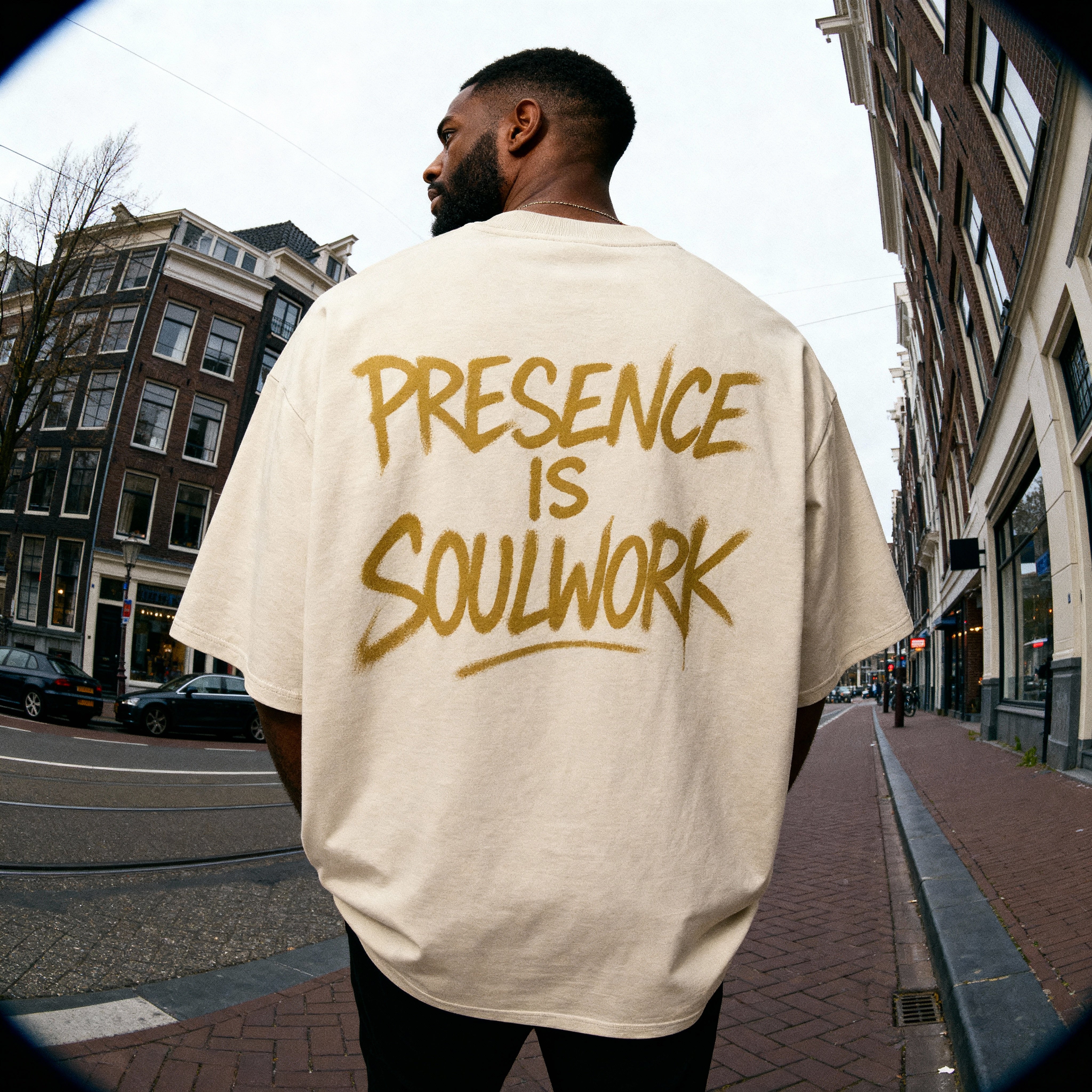 Presence Is Soulwork - Organic Oversize Tee Natural Raw